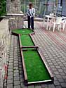Лунка - это та зеленая дорожка, по которой надо провести шар. Начало лунки - то место, где располагается шар для первоначального удара - называется "ти", а заканчивается лунка - углублением (так же называемым "лункой"), в которое необходимо попасть шаром. Для игры в минигольф необходимо 18 лунок (или 9 лунок для миниварианта). По Вашему заказу Федерация изготовит лунки, удовлетворяющие Вашим требованиям.